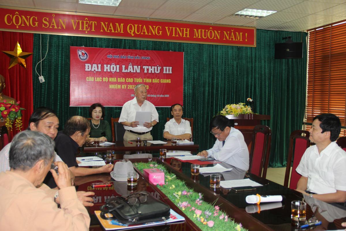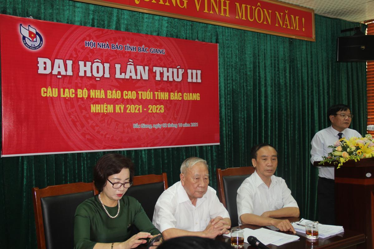 Phát biểu chỉ đạo tại đại hội, đồng chí Trịnh Văn Ánh, Tỉnh ủy viên, Ủy viên Ban chấp hành Hội Nhà báo Việt Nam, Tổng Biên tập Báo Bắc Giang, Chủ tịch Hội Nhà báo tỉnh đã ghi nhận những kết quả, nỗ lực của CLB nhà báo cao tuổi trong nhiệm kỳ qua và mong muốn đại hội bầu ra được Ban chủ nhiệm mới năng động, nhiệt huyết và tiếp tục là những hạt nhân gắn kết hội viên, đưa hoạt động của CLB ngày càng hiệu quả.