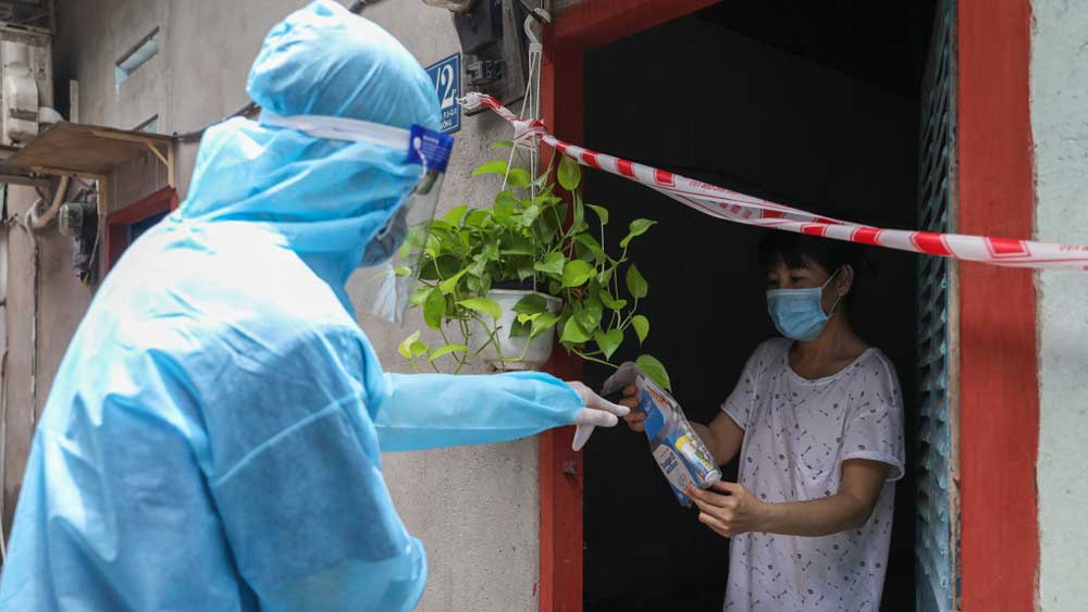 Nhân viên y tế TP HCM phát thuốc cho người mắc Covid-19 đang điều trị tại nhà. Ảnh: Quỳnh Trần