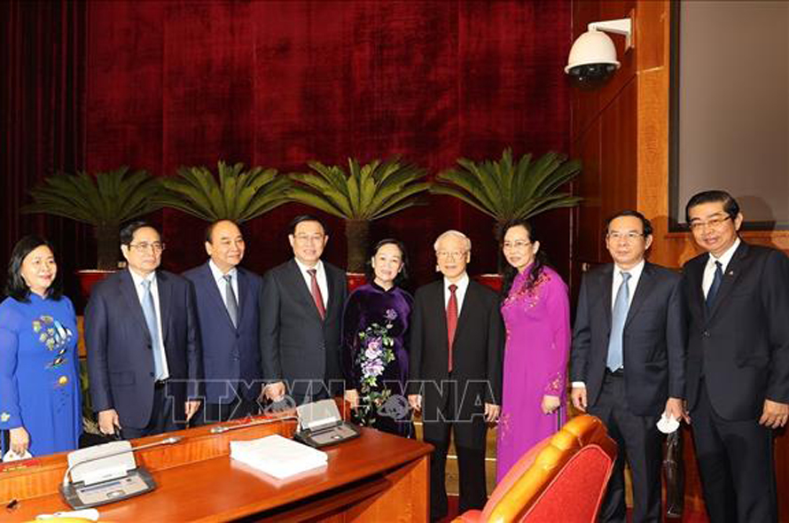 Tổng Bí thư Nguyễn Phú Trọng nhấn mạnh: "Với tinh thần đổi mới mạnh mẽ, năng động, quyết liệt trong lãnh đạo, chỉ đạo tổ chức thực hiện và sự nỗ lực phấn đấu của toàn Đảng, toàn dân, toàn quân, chúng ta đã kế thừa, phát huy tốt những thành tựu, kết quả đã đạt được, khắc phục những hạn chế, yếu kém còn tồn tại và bình tĩnh, tỉnh táo xử lý kịp thời, đúng đắn những vấn đề khó, chưa có tiền lệ, mới phát sinh trong phòng, chống dịch bệnh, hỗ trợ cho người dân và doanh nghiệp từng bước vượt qua khó khăn, duy trì, phục hồi và phát triển sản xuất kinh doanh, chăm sóc, bảo vệ sức khỏe và đời sống nhân dân, chăm lo việc học hành của học sinh, sinh viên... Tính ưu việt của chế độ xã hội chủ nghĩa ở nước ta, truyền thống đoàn kết, yêu nước, "thương người như thể thương thân", "lá lành đùm lá rách, lá rách ít đùm lá rách nhiều" của dân tộc ta lại tiếp tục được phát huy cao độ".