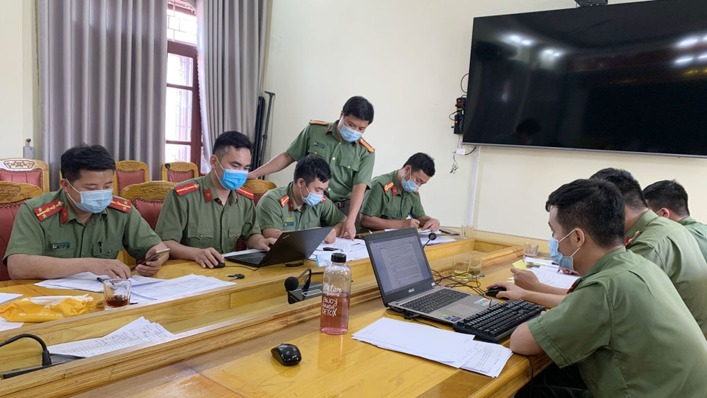 Công an huyện Lục Ngạn rà soát những trường hợp đưa tin không đúng sự thật lên mạng xã hội để xử lý. |