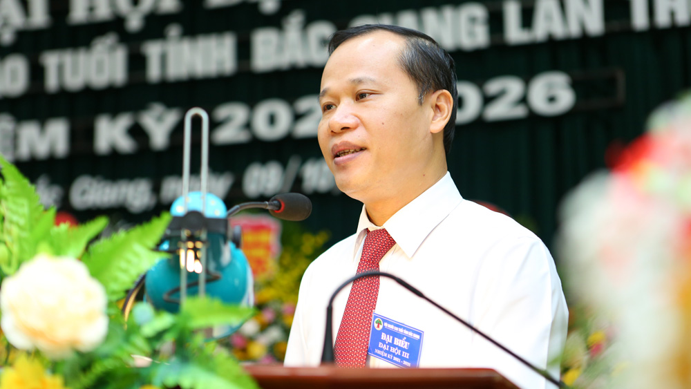 Đánh giá cao những kết quả đạt được của các cấp hội NCT tỉnh nhiệm kỳ qua, đồng chí bày tỏ sự đồng tình với phương hướng, nhiệm vụ trong báo cáo chính trị và các ý kiến của đại biểu đã thảo luận. Để tiếp tục làm tốt công tác chăm sóc và phát huy vai trò của NCT trong giai đoạn mới, xây dựng tổ chức hội ngày càng vững mạnh, góp phần xây dựng quê hương Bắc Giang ngày càng giàu đẹp, văn minh, đồng chí đề nghị hội NCT các cấp quan tâm thực hiện một số nhiệm vụ trọng tâm: Làm tốt công tác tham mưu và tranh thủ sự quan tâm lãnh đạo, chỉ đạo của cấp ủy, chính quyền để nâng cao chất lượng hoạt động hội; tăng cường kiểm tra đôn đốc, hướng dẫn hoạt động của hội cơ sở; chủ động phối hợp chặt chẽ với MTTQ, các ngành, đoàn thể thực hiện tốt công tác chăm sóc và phát huy vai trò NCT.