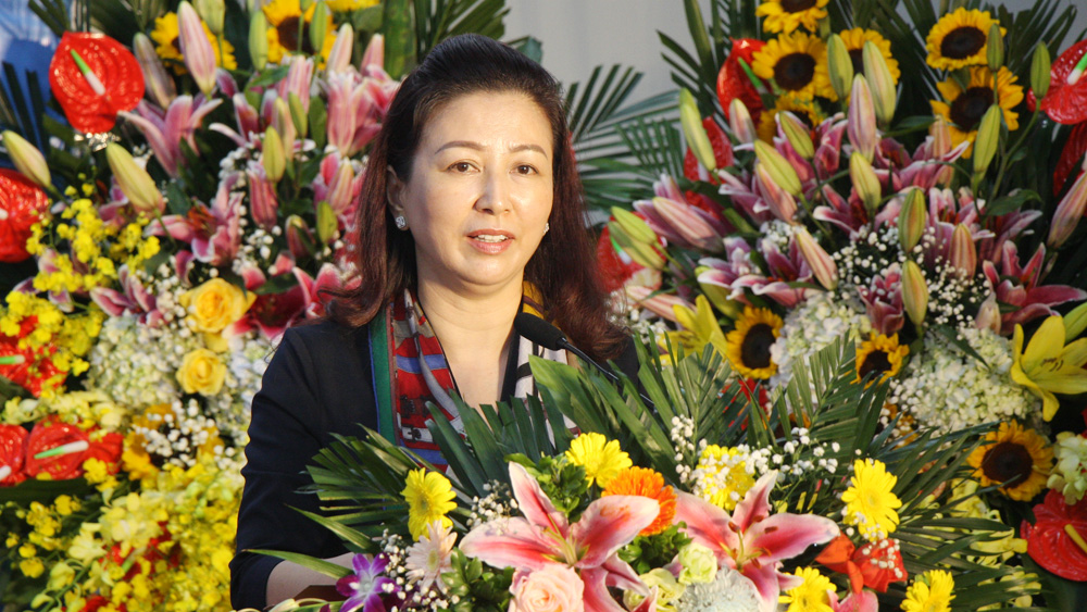 Đồng chí Lê Thị Thu Hồng phát biểu tại buổi lễ. |