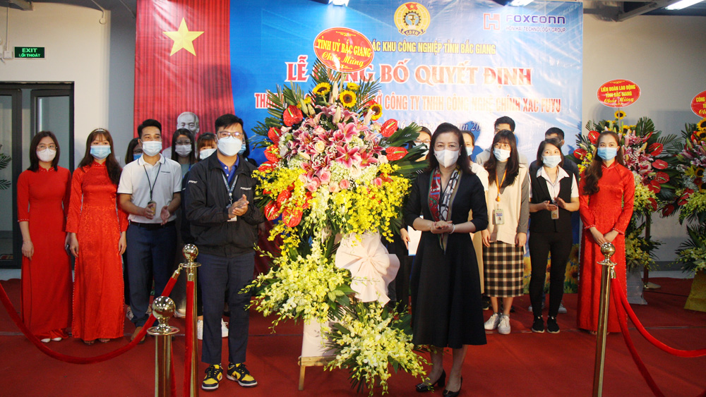 Sáng 16/10, Công đoàn các Khu công nghiệp (KCN) tỉnh Bắc Giang tổ chức lễ công bố quyết định thành lập công đoàn cơ sở (CĐCS) Công ty TNHH Công nghệ chính xác Fuyu (KCN Quang Châu, huyện Việt Yên). Đến dự có đồng chí Lê Thị Thu Hồng, Phó Bí thư Thường trực Tỉnh ủy, Chủ tịch HĐND tỉnh; đại diện lãnh đạo Liên đoàn Lao động (LĐLĐ) tỉnh; Ban Quản lý các KCN tỉnh.