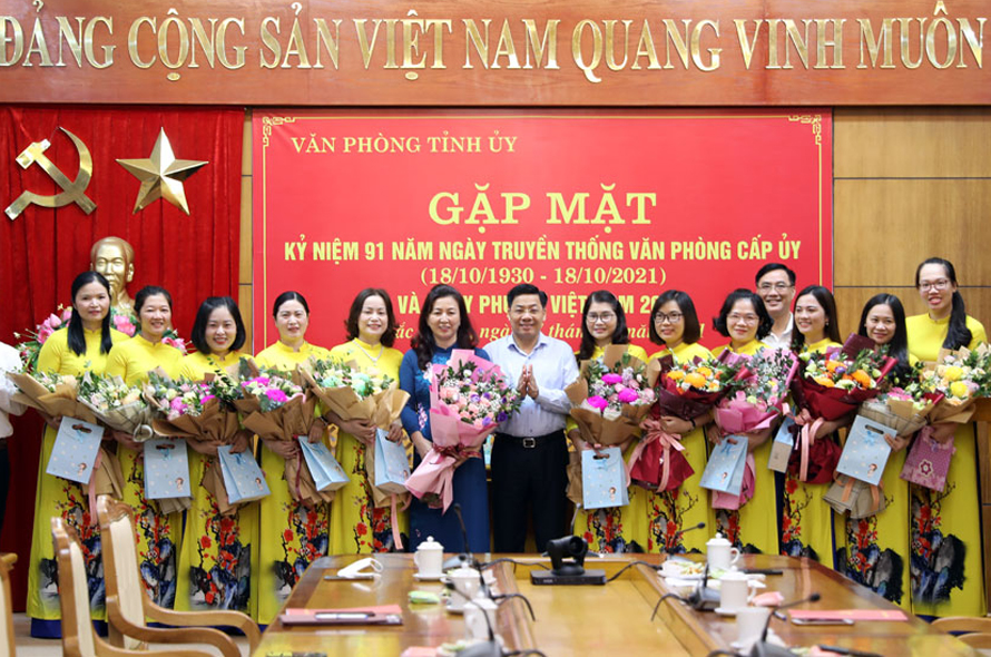 Chiều 17/10, Văn phòng Tỉnh ủy Bắc Giang tổ chức gặp mặt kỷ niệm 91 năm ngày truyền thống Văn phòng cấp ủy 18/10 (1930-2021) và ngày Phụ nữ Việt Nam 20/10. Tới dự có các đồng chí: Dương Văn Thái, Ủy viên T.Ư Đảng, Bí thư Tỉnh ủy, Trưởng Đoàn ĐBQH tỉnh; Lê Thị Thu Hồng, Phó Bí thư Thường trực Tỉnh ủy, Chủ tịch HĐND tỉnh.