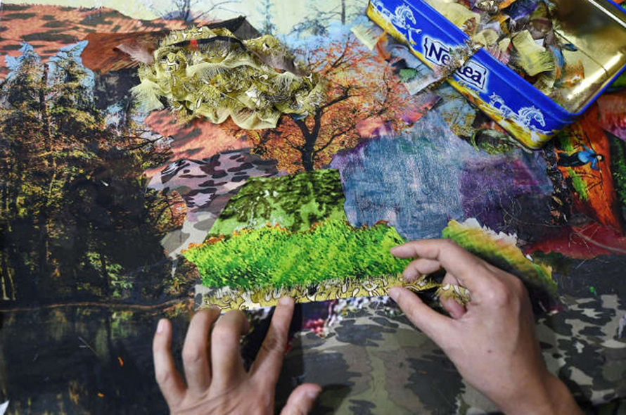 Những tấm vải nhỏ được tạo hình thành cây cối, dòng sông... Ảnh: AFP