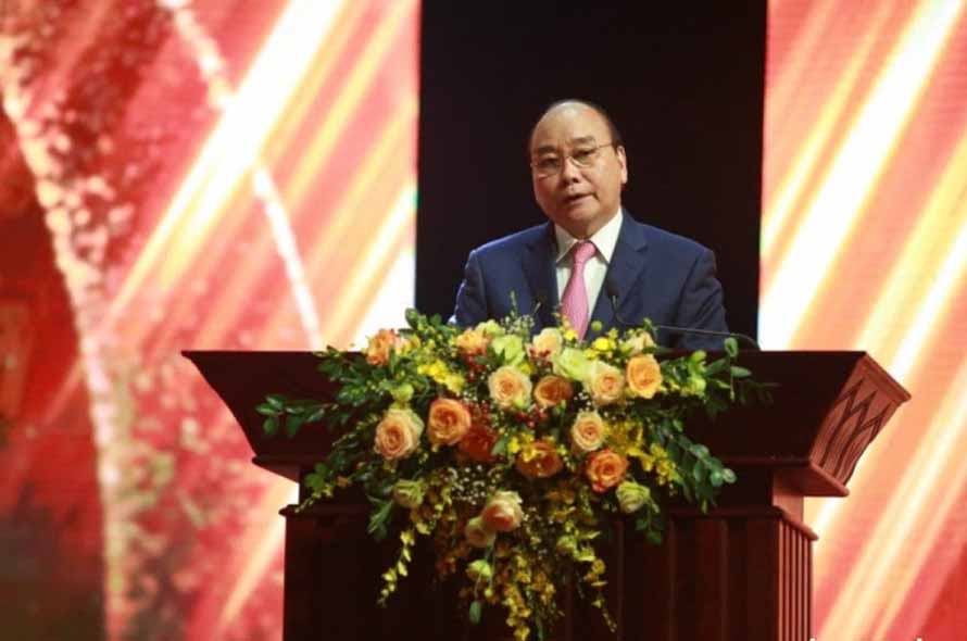 Chủ tịch nước Nguyễn Xuân Phúc phát biểu tại Lễ trao Giải Báo chí Quốc gia lần thứ XV- năm 2020. Ảnh: Quang Hùng.