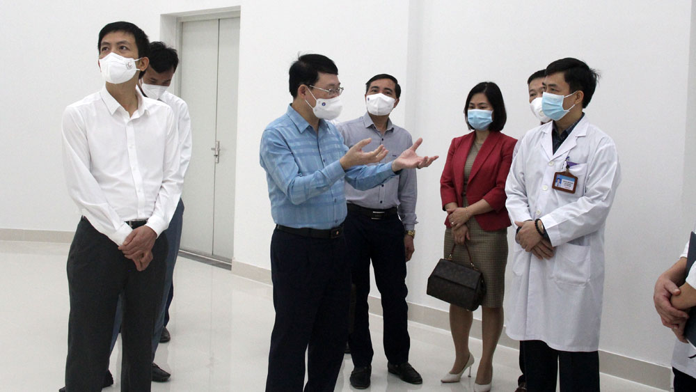 Sáng 26/10, đồng chí Lê Ánh Dương, Chủ tịch UBND tỉnh, Phó trưởng Ban Thường trực Ban Chỉ đạo Phòng, chống dịch Covid-19 tỉnh Bắc Giang kiểm tra công tác phòng, chống dịch Covid-19 và dự án đầu tư xây dựng tại Bệnh viện Đa khoa tỉnh.