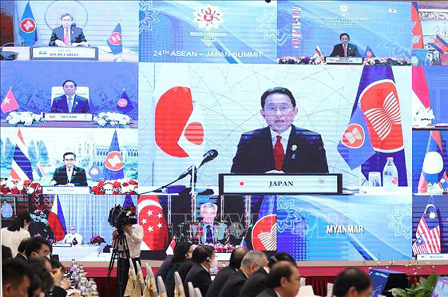 Nhật Bản khẳng định cam kết hỗ trợ ASEAN trong thu hẹp khoảng cách phát triển, phát triển tiểu vùng nhằm hạn chế các tác động do dịch COVID-19, đầu tư nguồn lực nhiều hơn giúp ASEAN ứng phó biến đổi khí hậu, phát triển xanh và bền vững...