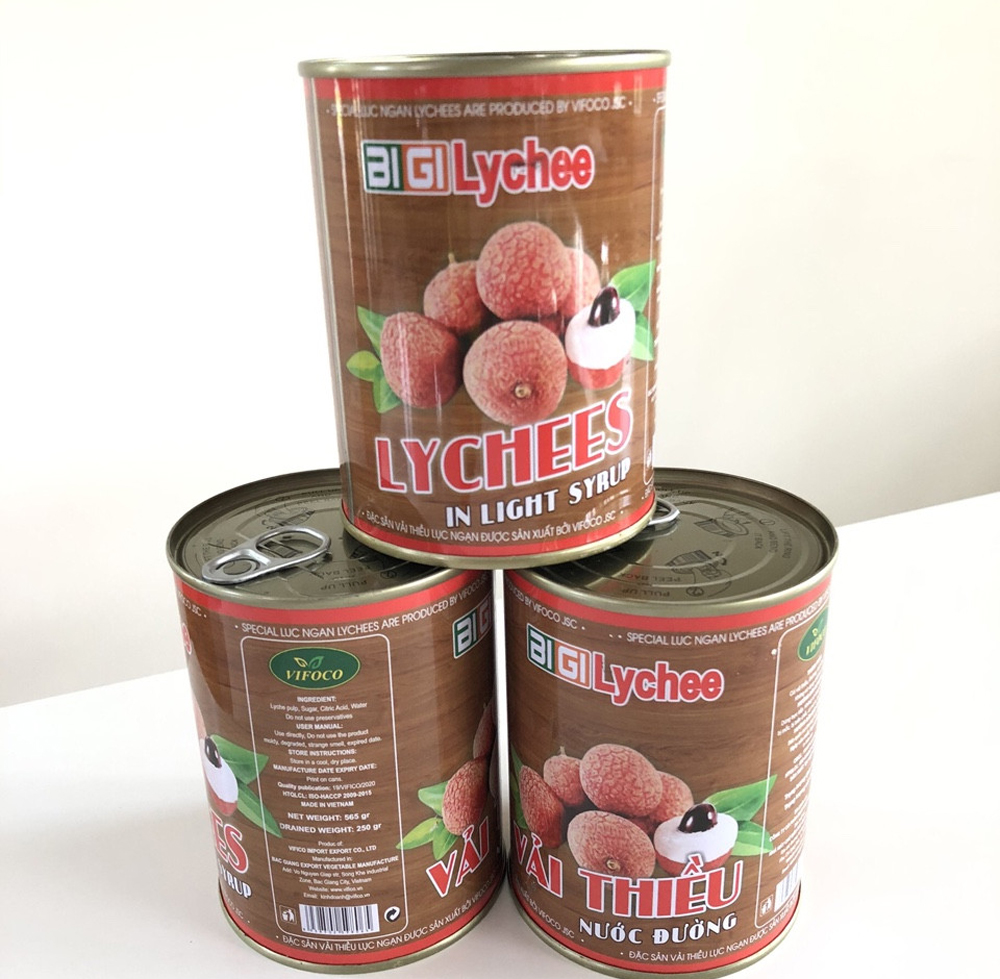 Sản phẩm vải thiều nước đường của Công ty cổ phần Xuất nhập khẩu Vifoco (TP Bắc Giang).