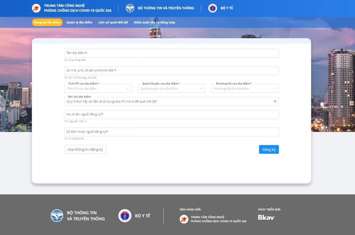 Các cơ sở sản xuất, kinh doanh có thể tạo mã QR địa điểm trên ứng dụng PC-COVID hoặc website http://qr.tokhaiyte.vn. |
