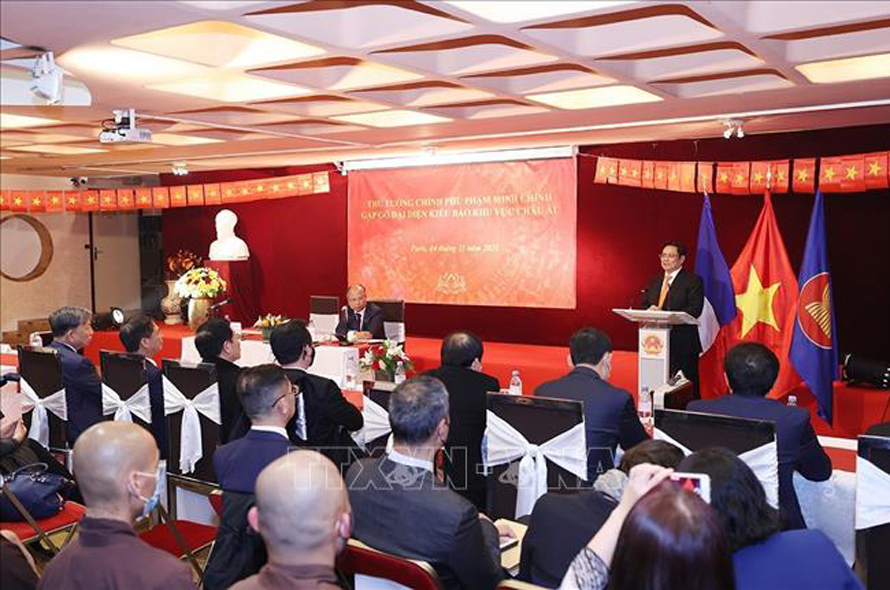 Theo đặc phái viên TTXVN, tối 4/11 (giờ Paris), Thủ tướng Chính phủ Phạm Minh Chính đã có buổi gặp mặt xúc động với đại diện kiều bào tại khu vực châu Âu, được tổ chức tại trụ sở Đại sứ quán Việt Nam tại Pháp. Thủ tướng khẳng định, Đảng, Nhà nước luôn tạo điều kiện tốt nhất để kiều bào đóng góp xây dựng và phát triển đất nước.