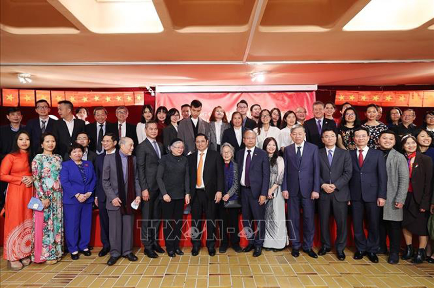 Cùng tham dự cuộc gặp mặt có các thành viên đoàn đại biểu cấp cao Việt Nam thăm chính thức Cộng hòa Pháp, Đại sứ Việt Nam tại Pháp Đinh Toàn Thắng, các đại sứ Việt Nam và đại diện cộng đồng người Việt Nam tại nhiều nước châu Âu.