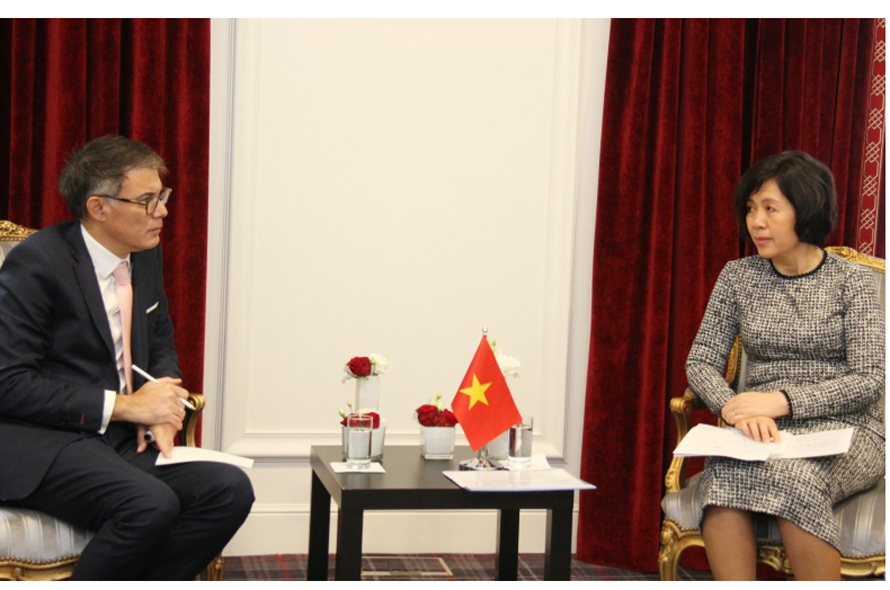 Tại buổi làm việc giữa Phó Trưởng ban Đối ngoại Trung ương Nguyễn Thị Hoàng Vân và Bí thư thứ nhất Đảng Xã hội Pháp Francois Peguillet.