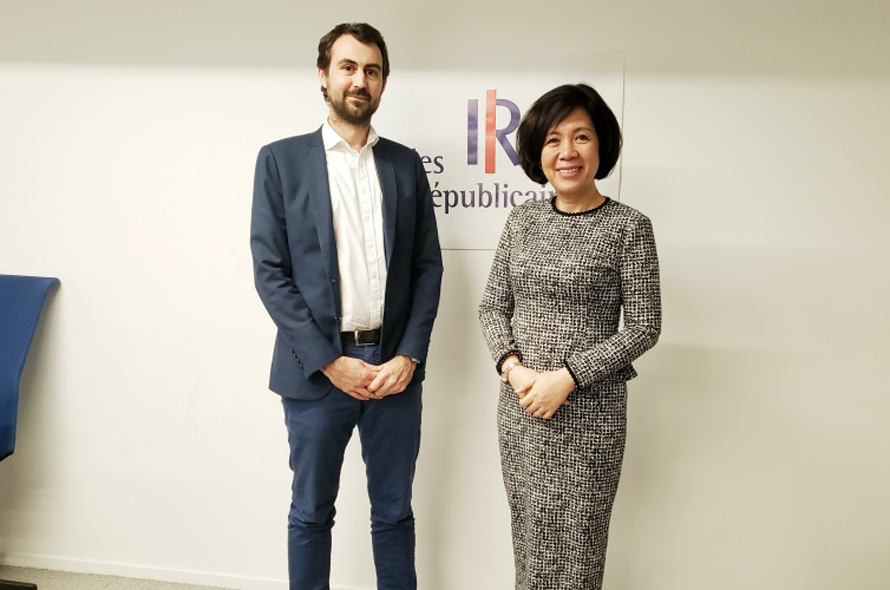 Phó Trưởng ban Đối ngoại Trung ương Nguyễn Thị Hoàng Vân gặp Trưởng Ban Đối ngoại Đảng Những người Cộng hòa Pháp (LR) Francois Peguillet.