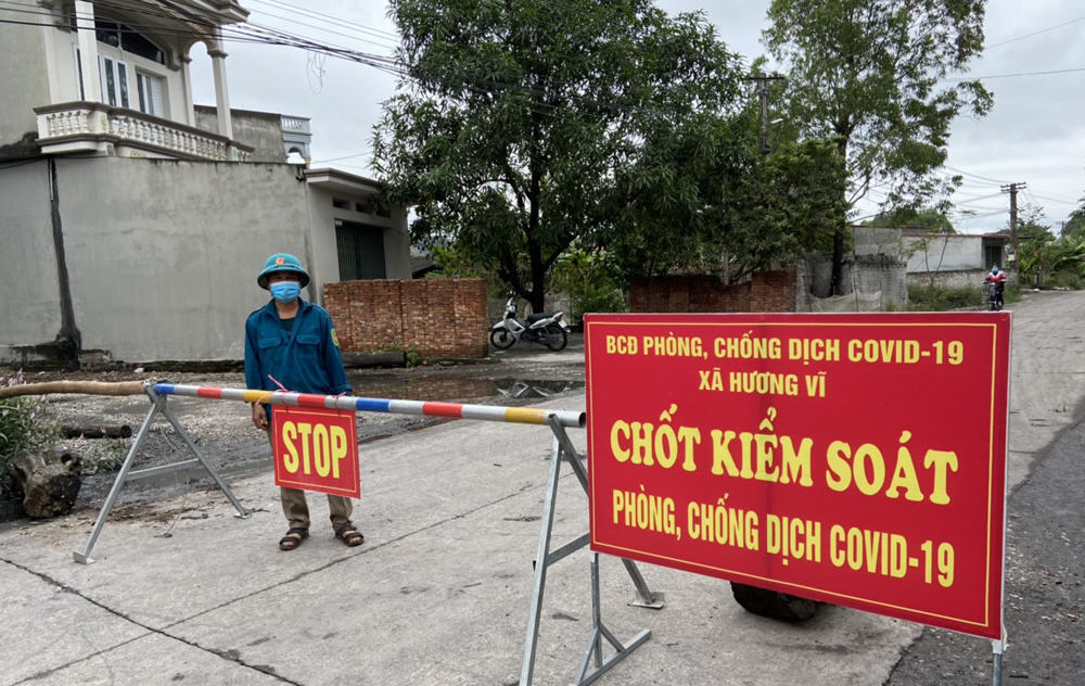 Chốt kiểm soát PCD Covid-19 xã Hương Vĩ (Yên Thế). |