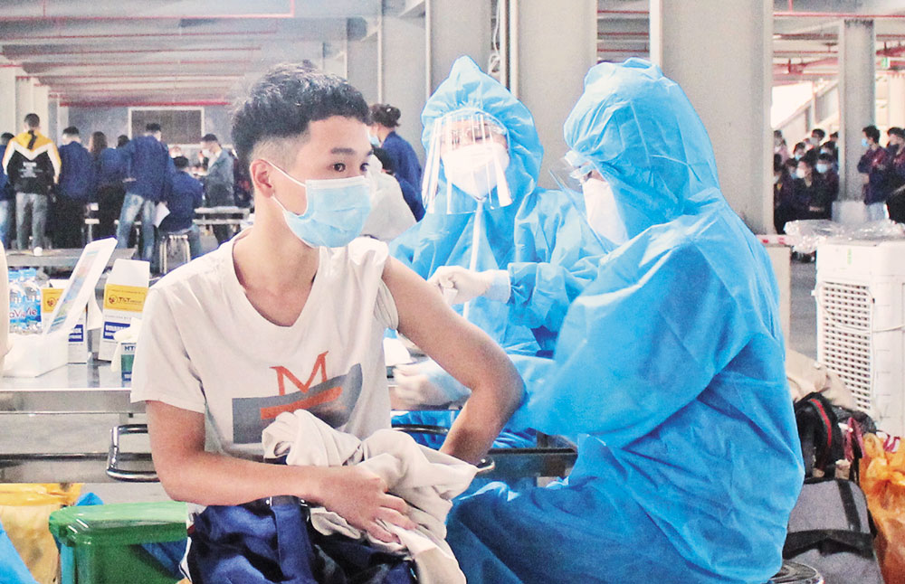 Tiêm vắc-xin phòng Covid-19 cho công nhân khu công nghiệp.