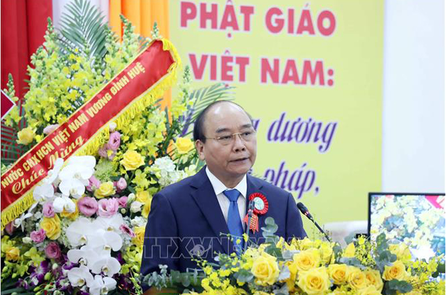 Đánh giá cao và nhiệt liệt chúc mừng những kết quả quan trọng mà Giáo hội Phật giáo Việt Nam và tăng ni, phật tử cả nước đã đạt được trong những năm qua, Chủ tịch nước Nguyễn Xuân Phúc khẳng định, Đảng và Nhà nước ta luôn quan tâm đến tôn giáo và công tác tôn giáo, ban hành nhiều chính sách, pháp luật liên quan đến tôn giáo. Trong đó khẳng định “tín ngưỡng, tôn giáo là nhu cầu tinh thần của một bộ phận nhân dân, đang và sẽ tồn tại cùng dân tộc trong quá trình xây dựng chủ nghĩa xã hội ở nước ta; đồng bào các tôn giáo là một bộ phận của khối đại đoàn kết toàn dân tộc; Mục tiêu dân giàu, nước mạnh, xã hội công bằng, dân chủ, văn minh là điểm tương đồng để gắn bỏ đồng bào các tôn giáo với sự nghiệp chung".