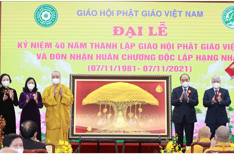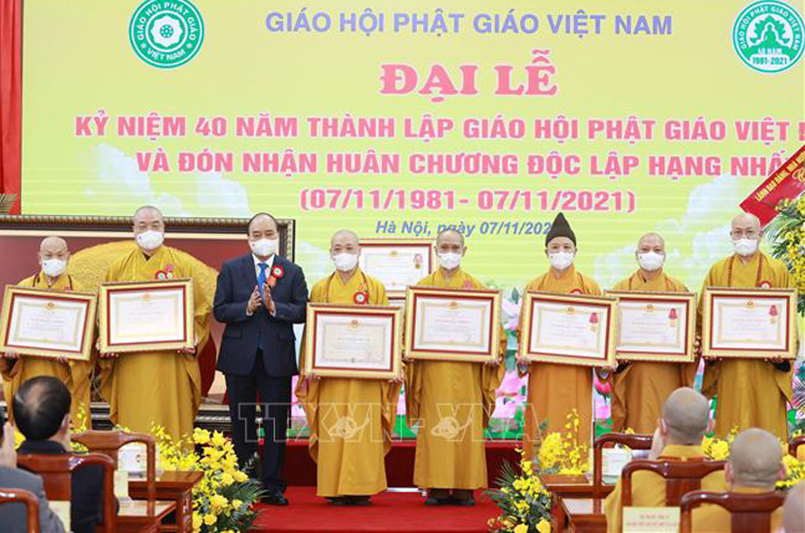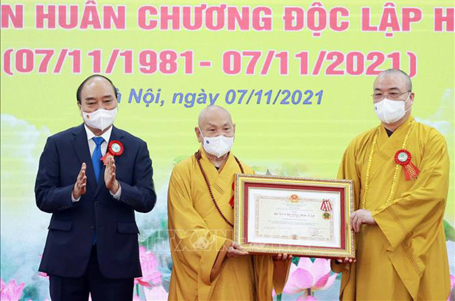 Tại buổi lễ, thay mặt lãnh đạo Đảng, Nhà nước, Chủ tịch nước Nguyễn Xuân Phúc đã trao Huân chương Độc lập hạng Nhất tặng Giáo hội Phật giáo Việt Nam.