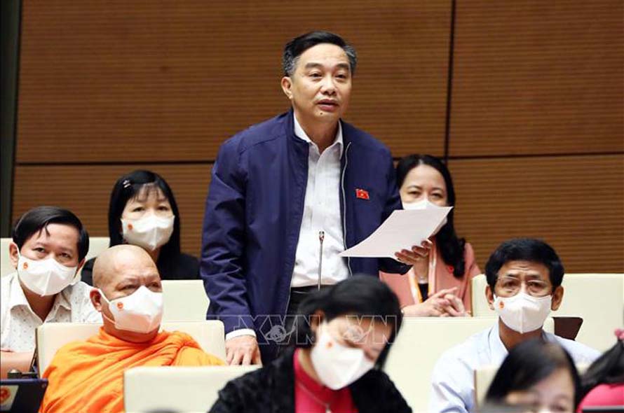 Đại biểu Quốc hội tỉnh Tiền Giang Nguyễn Minh Sơn đặt câu hỏi chất vấn. Ảnh: Phạm Kiên/TTXVN