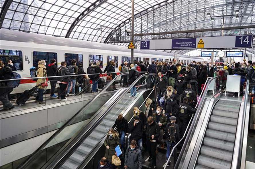 Hành khách tập trung đông đúc tại Nhà ga Trung tâm Berlin, Đức, ngày 5/11/2021. Ảnh: THX/ TTXVN