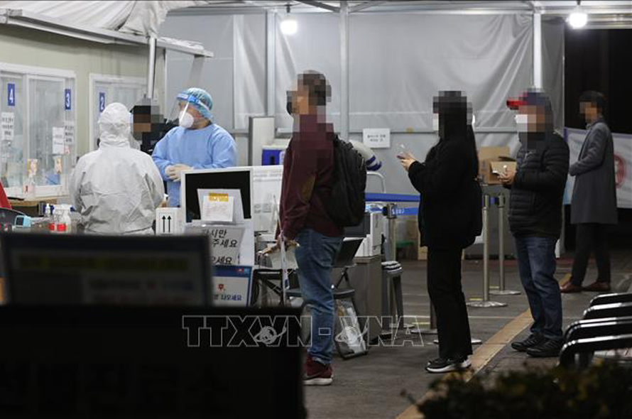 Người dân xếp hàng chờ xét nghiệm COVID-19 tại Seoul, Hàn Quốc. Ảnh: Yonhap/TTXVN