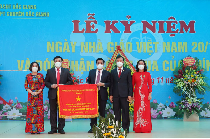 Tại buổi lễ, thừa ủy quyền của Thủ tướng Chính phủ, đồng chí Dương Văn Thái trao Cờ thi đua của Chính phủ cho Trường THPT Chuyên Bắc Giang. Đồng chí nhấn mạnh, trong 30 năm qua, các thế hệ thầy và trò Trường THPT Chuyên Bắc Giang kiên trì phấn đấu thi đua “dạy tốt - học tốt”. Chất lượng đội ngũ giáo viên, chất lượng giáo dục toàn diện, giáo dục mũi nhọn ngày càng được nâng lên.