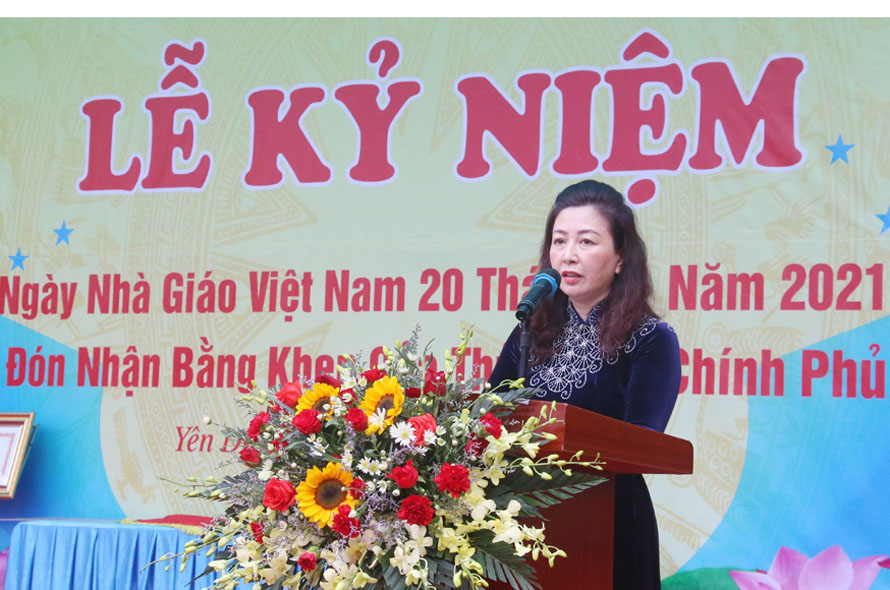 Thay mặt lãnh đạo tỉnh, đồng chí Lê Thị Thu Hồng gửi lời chúc mừng tốt đẹp nhất đến các thầy, cô giáo Trường THPT Yên Dũng số 3 nhân kỷ niệm 39 năm Ngày Nhà giáo Việt Nam. Trước yêu cầu đổi mới giáo dục, nhằm nâng cao chất lượng nguồn nhân lực, nhất là trong bối cảnh dịch bệnh tiềm ẩn nhiều nguy cơ phức tạp, đồng chí đề nghị Trường THPT Yên Dũng số 3 tiếp tục đổi mới toàn diện trên tất cả các lĩnh vực công tác.