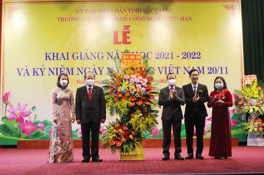 *Sáng 20/11, đồng chí Mai Sơn, Phó Chủ tịch Thường trực UBND tỉnh dự lễ khai giảng năm học 2021-2022 và kỷ niệm Ngày Nhà giáo Việt Nam tại Trường Cao đẳng Nghề công nghệ Việt-Hàn.