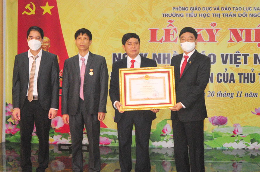 Nhân dịp này, thừa ủy quyền của Thủ tướng Chính phủ, đồng chí trao Bằng khen của Thủ tướng Chính phủ cho 2 giáo viên của nhà trường. Ngoài ra, một số thầy, cô giáo được nhận Bằng khen của Bộ Giáo dục và Đào tạo; danh hiệu Chiến sĩ thi đua cấp tỉnh, Bằng khen của Chủ tịch UBND tỉnh.