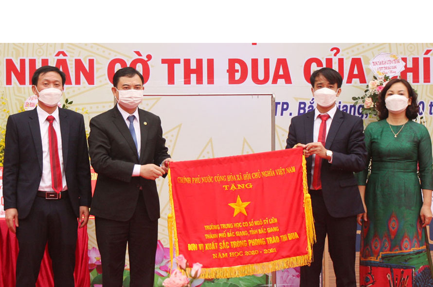 Nhân dịp này, thừa ủy quyền của Thủ tướng Chính phủ, đồng chí Vũ Trí Hải trao Cờ thi đua “Đơn vị xuất sắc trong phong trào thi đua năm học 2020-2021” do Chính phủ trao tặng cho Trường THCS Ngô Sĩ Liên; tặng hoa và tặng quà cho nhà trường.