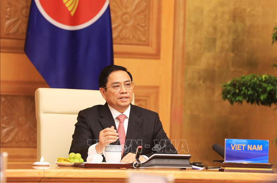Thủ tướng Chính phủ Phạm Minh Chính phát biểu tại Hội nghị cấp cao đặc biệt kỷ niệm 30 năm quan hệ ASEAN-Trung Quốc. Ảnh: Lâm Khánh/TTXVN