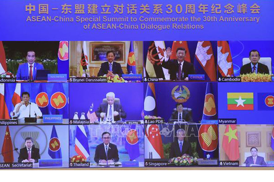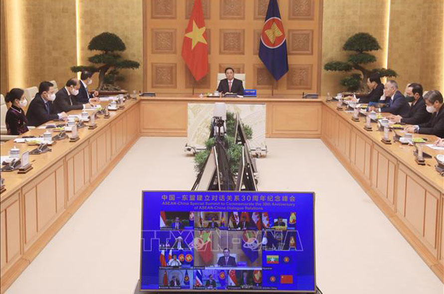 Hội nghị trực tuyến cấp cao đặc biệt kỷ niệm 30 năm quan hệ đối thoại ASEAN - Trung Quốc Ảnh: Lâm Khánh/TTXVN