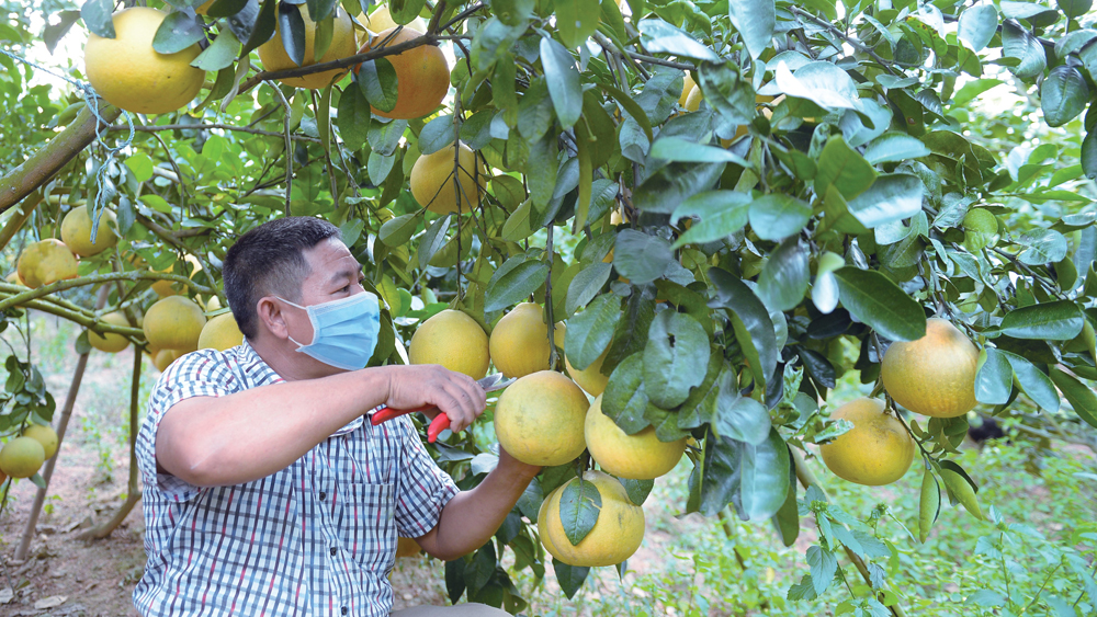 Nông dân Bắc Giang thu hoạch bưởi để tiêu thụ trên các sàn TMĐT.