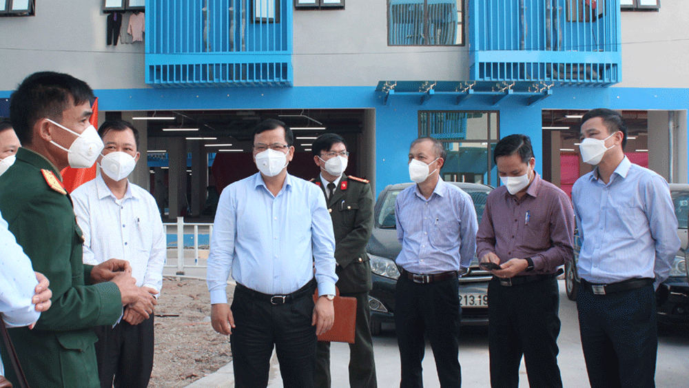 Đồng chí Phan Thế Tuấn kiểm tra khu cách ly tập trung tại xã Nội Hoàng (Yên Dũng).