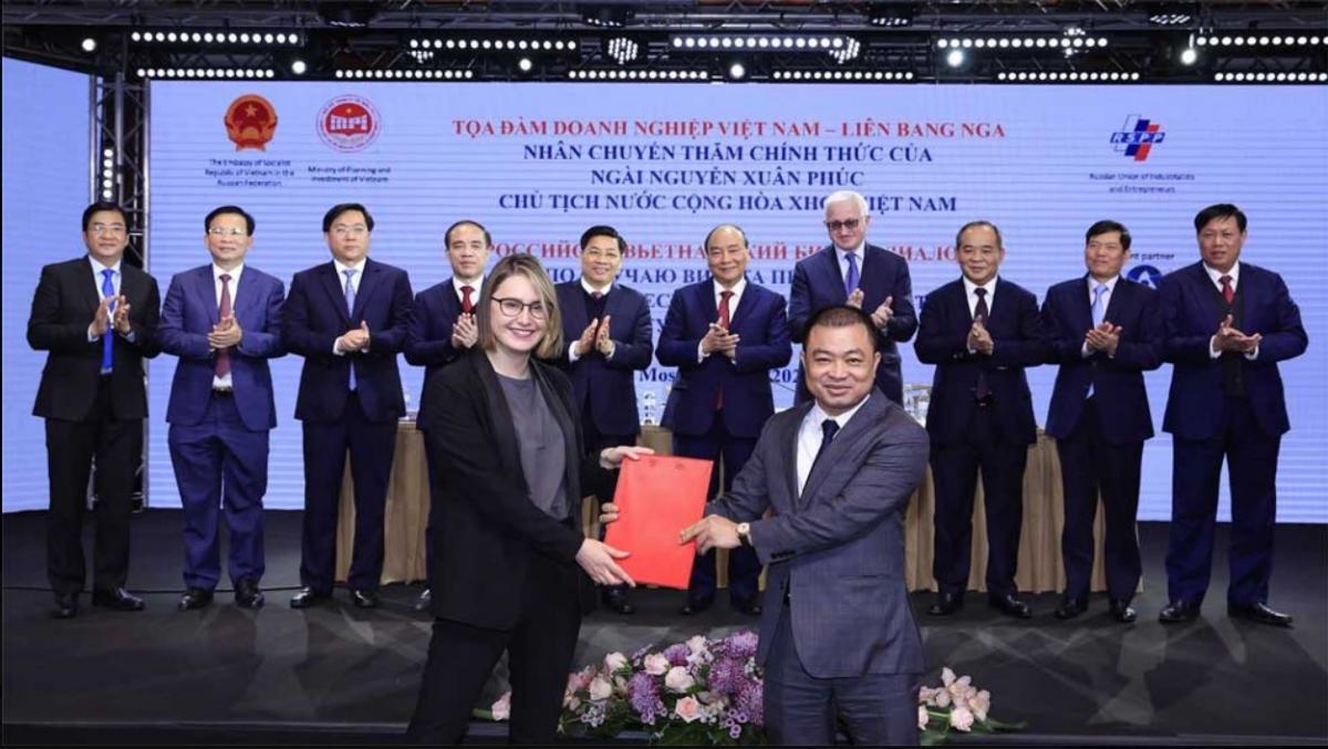 Hoan nghênh nhiều doanh nghiệp Việt Nam và Nga có mặt tại Tọa đàm, Chủ tịch nước Nguyễn Xuân Phúc thông báo với doanh nghiệp hai nước về kết quả tốt đẹp của cuộc hội đàm với Tổng thống Vladimir Putin, mở ra nhiều nội dung hợp tác trong nhiều lĩnh vực, nhất là kinh tế và thương mại, trong bối cảnh Việt Nam tiếp tục phát triển, tăng trưởng có thể đạt 4,5% trong năm nay dù dịch bệnh Covid-19; tổng kim ngạch xuất nhập khẩu đạt khoảng 600 tỷ USD, xuất siêu liên tục, lạm phát thấp. Việt Nam là nền kinh tế quy mô lớn thứ 3 trong Hiệp hội Các quốc gia Đông Nam Á (ASEAN). Là nước tham gia 15 hiệp định thương mại tự do với nhiều hiệp định tiêu chuẩn cao, đầu tư vào Việt Nam, các doanh nghiệp Nga có cơ hội thâm nhập vào các thị trường hết sức rộng lớn.