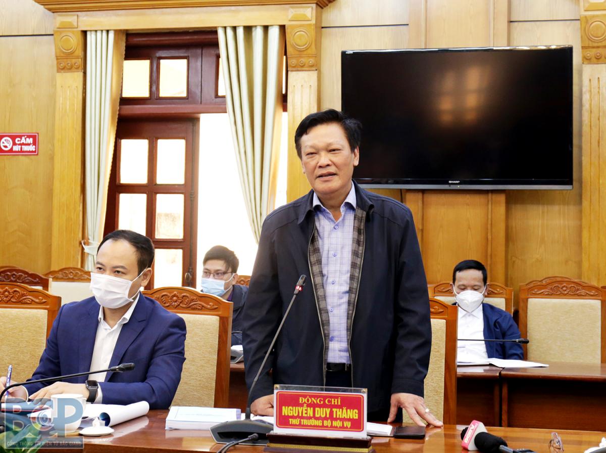 Phát biểu kết luận buổi làm việc, Thứ trưởng Bộ Nội vụ Nguyễn Duy Thăng đánh giá cao sự phát triển của tỉnh Bắc Giang trong những năm gần đây. Đồng chí đồng tình với việc thành lập các thị trấn mới, phù hợp với sự phát triển của tỉnh. Đồng thời đề nghị nội dung trong Đề án cần nêu bật hơn nữa sự cần thiết của việc thành lập thị trấn; bổ sung, thay đổi các số liệu, bố cục một cách chính xác, phù hợp, bảo đảm theo đúng quy định. Tỉnh cần sớm hoàn chỉnh lại các Đề án, sau đó Bộ Nội vụ sẽ tiến hành thẩm định liên bộ trước khi trình lên Chính phủ và Ủy ban Thường vụ Quốc hội.