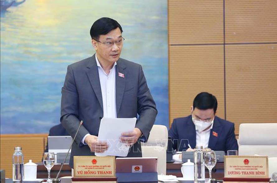 Chủ nhiệm Ủy ban Kinh tế của Quốc hội Vũ Hồng Thanh trình bày báo cáo thẩm tra. Ảnh: Doãn Tấn/TTXVN