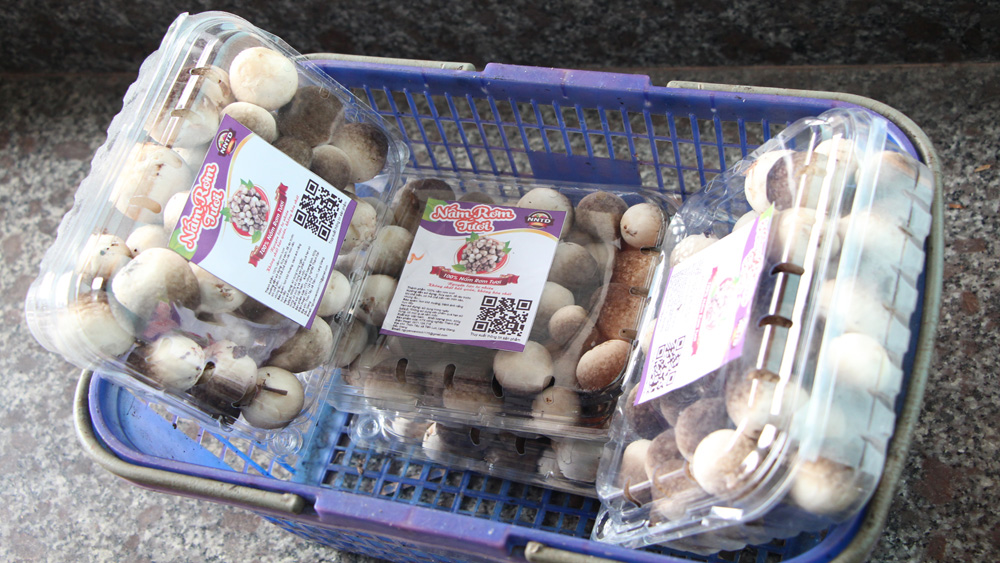 Nấm thương phẩm được đóng gói, mang đi tiêu thụ.