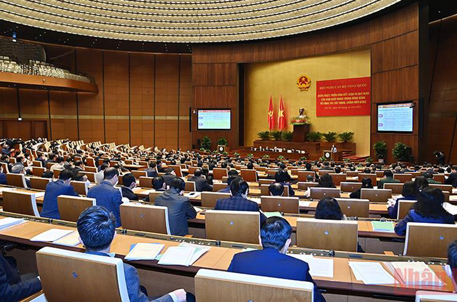 Sáng 9/12, Hội nghị cán bộ toàn quốc về quán triệt, triển khai Kết luận và Quy định của Ban Chấp hành Trung ương về công tác xây dựng, chỉnh đốn Đảng được tổ chức trực tiếp kết hợp trực tuyến từ Phòng họp Diên Hồng, tòa nhà Quốc hội đến các đảng ủy trực thuộc Trung ương, các tỉnh ủy, thành ủy, cấp ủy cấp huyện và cơ sở trong cả nước. Tổng Bí thư Nguyễn Phú Trọng dự, chủ trì, phát biểu chỉ đạo.