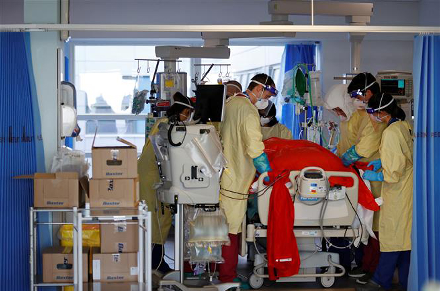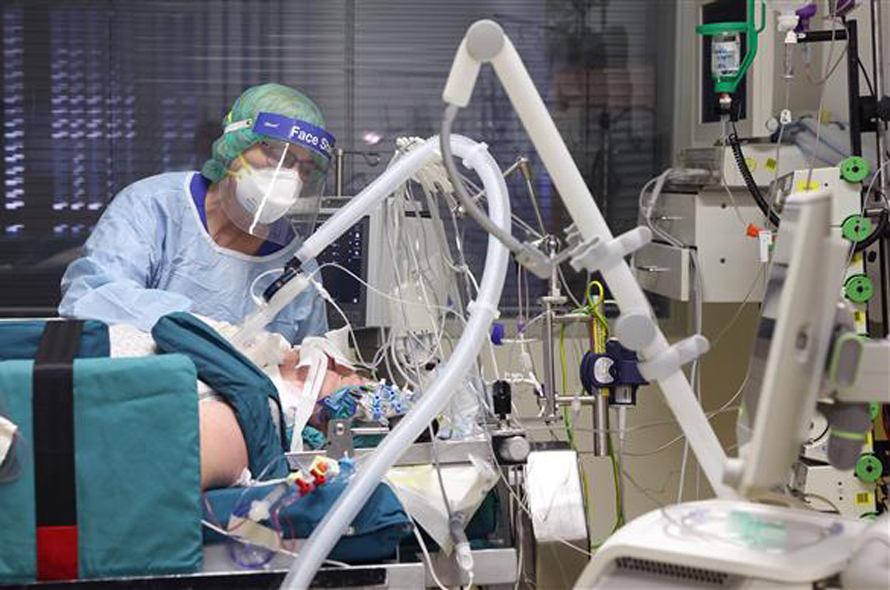 Nhân viên y tế điều trị cho bệnh nhân nhiễm COVID-19 tại bệnh viện ở Magdeburg, Đức. Ảnh: AFP/