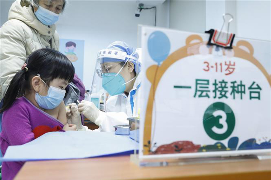 Nhân viên y tế tiêm vaccine ngừa COVID-19 cho trẻ em tại Bắc Kinh, Trung Quốc, ngày 9/12/2021. Ảnh: THX/TTXVN