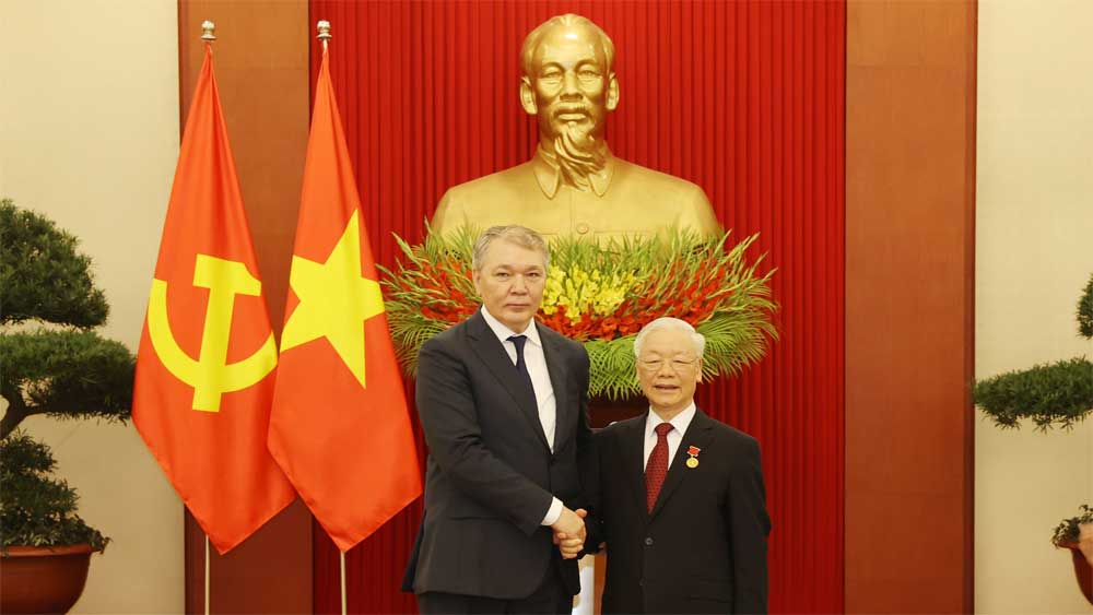 Đồng chí Lê-ô-nhít Ka-lát-xnhi-cốp, Phó Chủ tịch Đảng, Chủ nhiệm Ủy ban các vấn đề về khối Cộng đồng các quốc gia độc lập, Liên kết Á-Âu và Kiều bào của Đu-ma Quốc gia Nga, đã thay mặt Ban Chấp hành Trung ương Đảng Cộng sản Liên bang Nga trao tặng Tổng Bí thư Nguyễn Phú trọng Giải thưởng cao quý nhất của Đảng Cộng sản Liên bang Nga và Đảng Cộng sản Liên Xô.