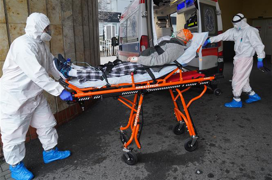 Chuyển bệnh nhân nhiễm COVID-19 tới điều trị tại bệnh viện ở Warsaw, Ba Lan. Ảnh: AFP/TTXVN