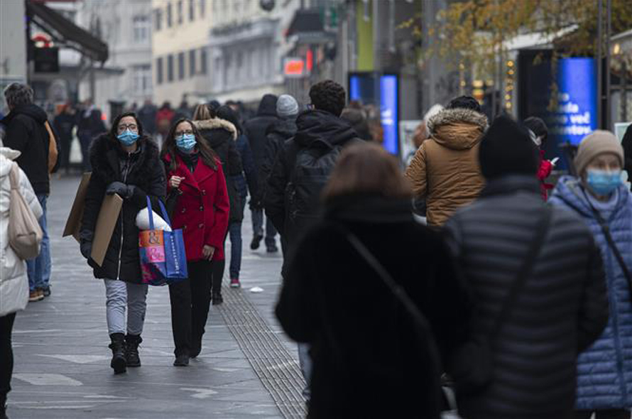 Người dân đeo khẩu trang phòng dịch COVID-19 tại Ljubljana, Slovenia, ngày 14/12/2021. Ảnh: THX/ TTXVN