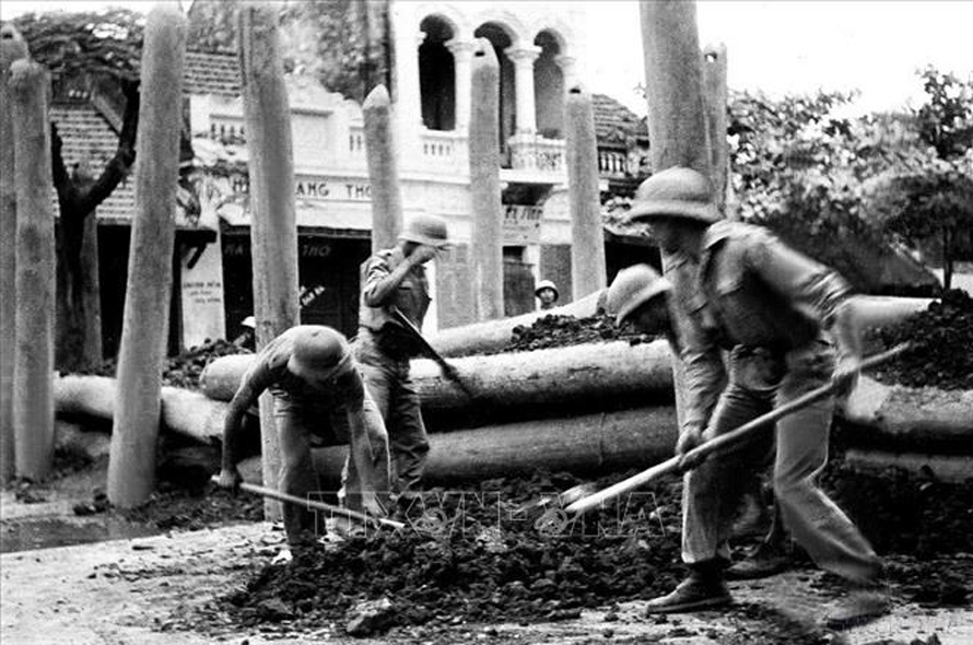 Bộ đội đào giao thông hào ở Bắc Bộ Phủ, sẵn sàng quyết chiến với giặc Pháp. Ảnh: Tư liệu TTXVN