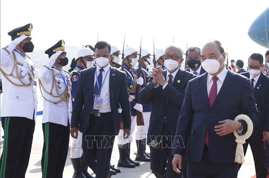 Chủ tịch nước đến Phnom Penh, bắt đầu thăm chính thức Vương quốc Campuchia