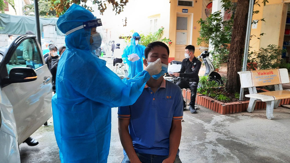Lấy mẫu xét nghiệm cho người dân tại phường Ngô Quyền (TP Bắc Giang). |