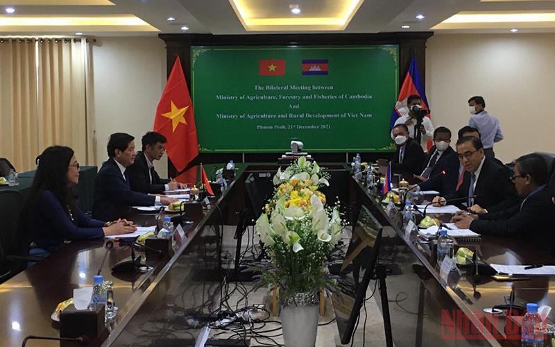 Trong khuôn khổ chuyến thăm cấp Nhà nước của Chủ tịch nước Nguyễn Xuân Phúc tới Vương quốc Campuchia, chiều 21/12, tại Phnom Penh, Đoàn đại biểu Bộ Nông nghiệp và Phát triển nông thôn Việt Nam do Thứ trưởng Lê Quốc Doanh dẫn đầu có cuộc gặp song phương với đoàn đại biểu Bộ Nông, Lâm, Ngư nghiệp Campuchia do Bộ trưởng Veng Sakhon dẫn đầu.