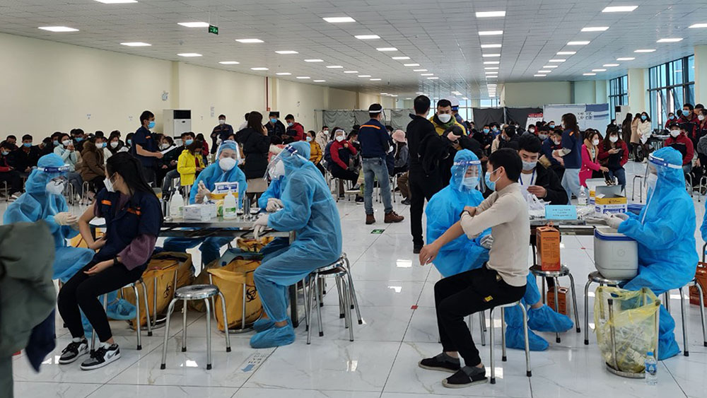 Những ngày này, ngoài yêu cầu công nhân thực hiện “5K”, xác định tiêm phòng là biện pháp hữu hiệu nhất để phòng dịch, Công ty TNHH Crystal Martin Việt Nam (KCN Quang Châu) đang tập trung cao tiêm phòng mũi 3 cho người lao động. Theo đại diện Phòng Hành chính Nhân sự Công ty, trước kỳ nghỉ Tết năm nay, DN tiêm mũi 3 cho 4,7 nghìn lao động, đạt khoảng 50% tổng số công nhân. Sau kỳ nghỉ, công nhân quay lại làm việc tiếp tục được tiêm và xét nghiệm tầm soát 3 lần trong 10 ngày đầu.