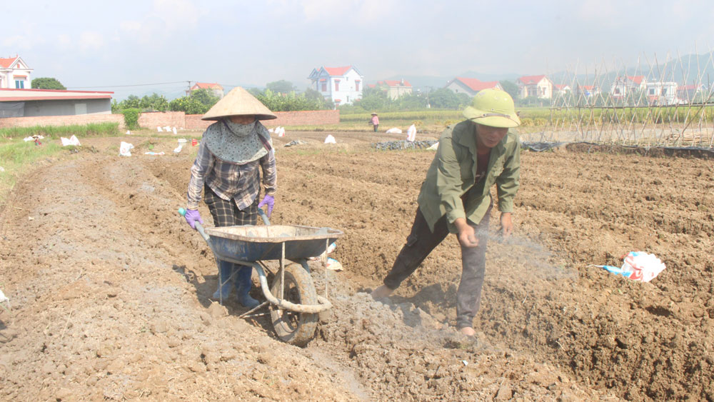 Theo kế hoạch, vụ đông năm nay, toàn tỉnh gieo trồng 22,5 nghìn ha rau, màu các loại (tương đương năm ngoái), trong đó rau 13,3 nghìn ha (chiếm gần 60%), còn lại là cây trồng khác như: Ngô (4,7 nghìn ha); khoai lang (hơn 2,1 nghìn ha); lạc (1,1 nghìn ha)... Để bảo đảm tiến độ thời vụ, ngay sau khi thu hoạch trà lúa mùa sớm, tranh thủ thời tiết thuận lợi, các địa phương chỉ đạo, hướng dẫn nông dân bắt tay ngay vào sản xuất vụ đông. Nhờ đó đến nay, toàn tỉnh đã gieo trồng được hơn 5,4 nghìn ha cây vụ đông, tập trung tại các huyện: Lục Nam (1,6 nghìn ha); Hiệp Hòa (1,5 nghìn ha); Tân Yên (860 ha)…